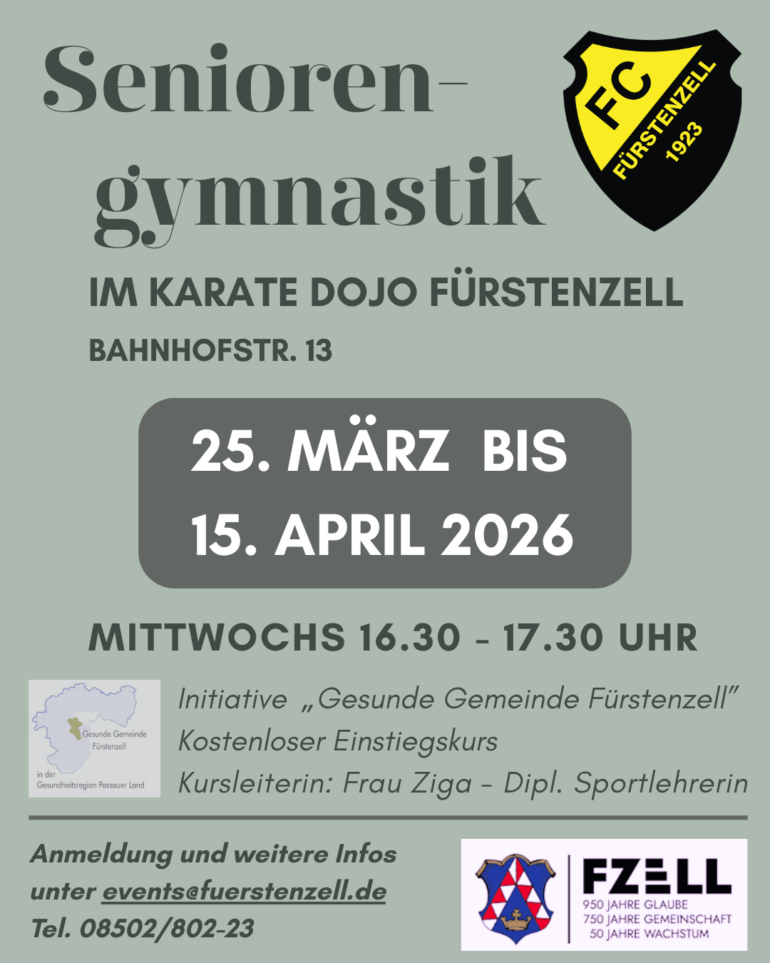 - 25. März bis 15. April 2026 - Senioren Gymnastik im Karate Dojo Fürstenzell