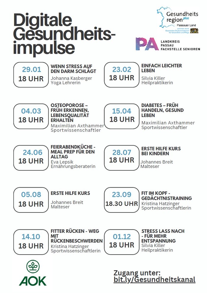 In Kooperation mit der Gesundheitsregionplus Passauer Land, der AOK und der Fachstelle Senioren Landkreis Passau wird für pflegende Angehörige ein kostenloses Resilienz-Training angeboten.
